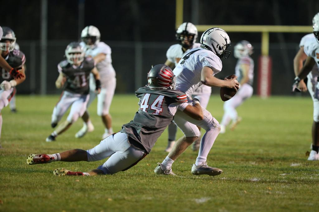 The Tigers’ next possession would see Peterson finally find his favorite target, Jake Schultz, for a short gain on first down. Schultz caught the game winning TD against the White Hawks during the regular season matchup, but this would be his only catch of the night, as the Westonka secondary blanketed him all evening long. Holappa’s pressure on 2nd down made Peterson throw to his right, however there wasn’t a receiver in sight, and he was flagged for intentional grounding. On third down, Sloan literally ran around the right tackle forcing Peterson to scramble aimlessly, where Hoisington tracked him down for another sack. This time for a 12 yard loss. Schultz’s 63-yard punt came to a stop at the Westonka 22-yard line.