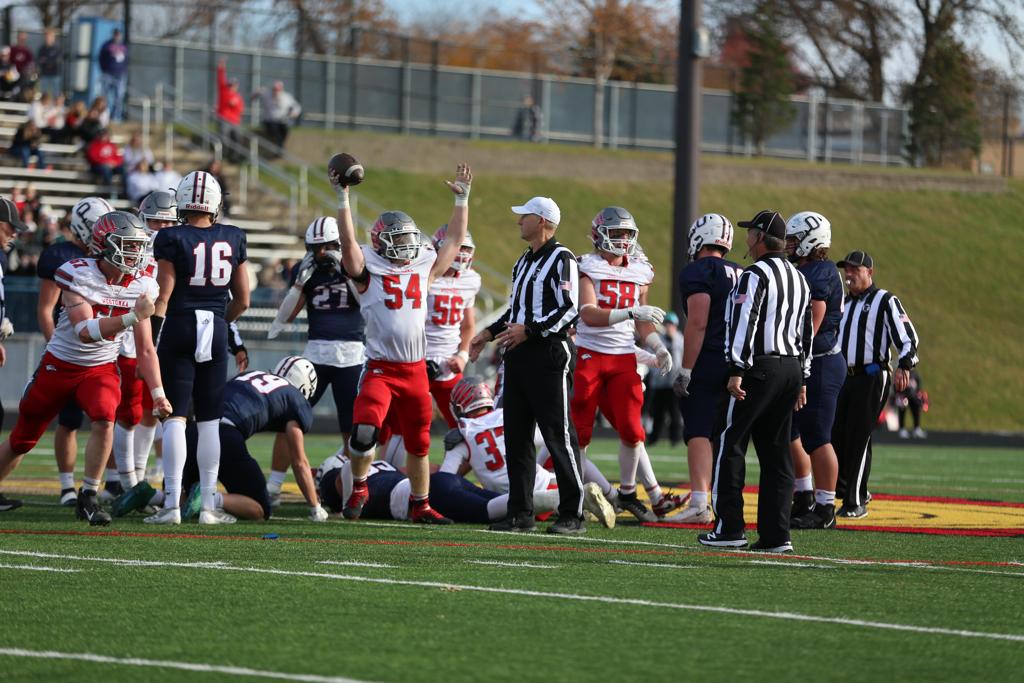 Drill (5-of-11, 78 yards passing) would finish with 122 rushing yards on 18 carries, while Reinbold had 80 yards on the ground. Sluka caught two passes for 29 yards. Defensively, seniors Cole Munsterteiger (11 tackles, TFL), Mason Sebasky (8 tackles, pass defended), Carter Kleinsasser (7 tackles), Dylan Sloan (7 tackles, 2 TFL’s, sack, forced fumble), and Joe Sluka (6 tackles) closed out their careers on a high note. Juniors Brandt Tebbs (game-high 12 tackles) and Andrew Hoisington (7 tackles, TFL). Seniors Roman Larsen (4 tackles, 2 TFL’s), John Seemann (4 tackles), and Dylan Holappa (3 tackles) helped hold Orono to 128 yards rushing, which is below their season average.