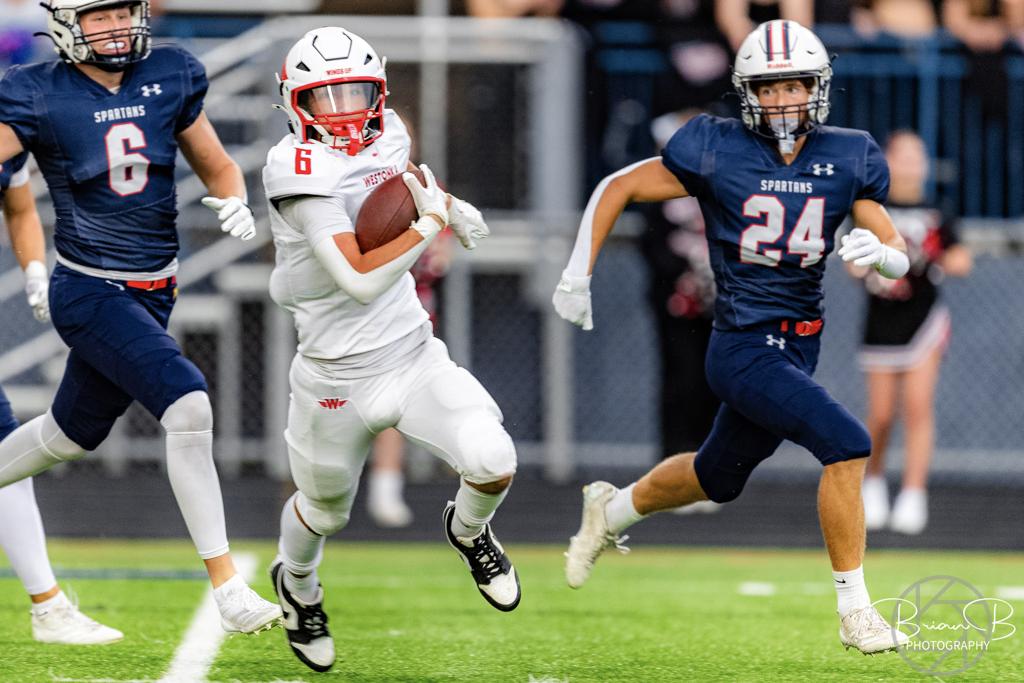 Orono, MN – Westonka and Orono renewed the annual “Battle for the Anchor” football game on Friday night with the Spartans retaining the trophy enroute to a 37-0 win at Orono High School. Orono quarterback Griffin Mauer rushed for a season-high 145 yards while halfback Rory Kvern totaled 97 yards on the ground and two touchdowns.